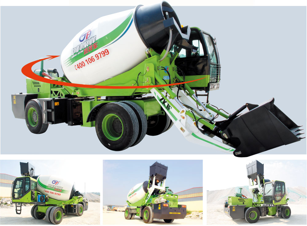 “重型”球形鞍座上安装的反力架可以180°液压旋转,并且通过液压式制动器自动锁止。滚筒旋转通过柱塞泵和闭路中的柱塞液压马达实现,在操作室内和搅拌机后部拥有手动电气阀。
