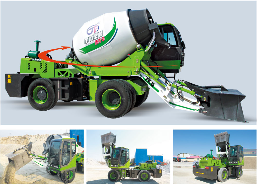 “重型”球形鞍座上安装的反力架可以180°液压旋转,并且通过液压式制动器自动锁止。滚筒旋转通过柱塞泵和闭路中的柱塞液压马达实现,在操作室内和搅拌机后部拥有手动电气阀。