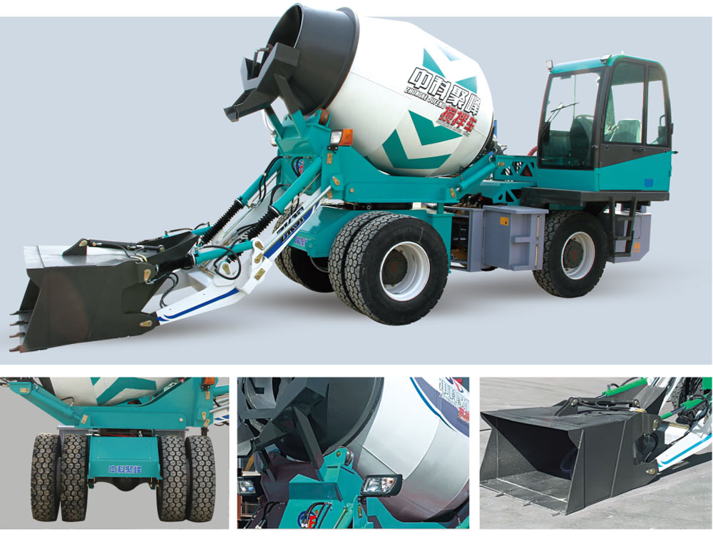 “重型”球形鞍座上安装的反力架可以180°液压旋转,并且通过液压式制动器自动锁止。滚筒旋转通过柱塞泵和闭路中的柱塞液压马达实现,在操作室内和搅拌机后部拥有手动电气阀。